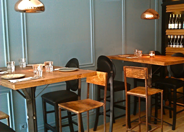 El local es pequeñito y se accede por unas escaleras, pero la decoración está muy cuidada y sigue mucho el estilo más de moda: rústico con aire chic.