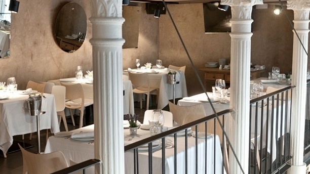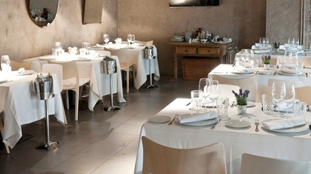 Tienen varias zonas, una de barra para aperitivos y tapas con mesitas y taburetes altos, y otra zona de mesas para comidas y cenas.