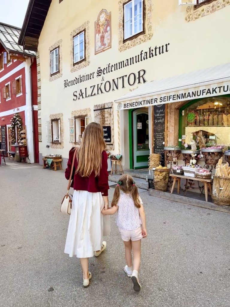 Hallstatt es el destino más conocido. Pasear bordeando el lago viendo los cisnes es una maravilla, y la plaza central merece la pena por sus casitas de colores. Además, ahí podéis coger un funicular que os lleva a lo alto de la montaña a ver una panorámica. Se llama Hallstatt Skywalk y hay un restaurante arriba donde podéis comer, aunque no reservan. En mi opinión, a nosotros no nos mereció del todo la pena. Es muy bonito, pero súper caro (24€/adultos y 12€/niños) y a mi me dio un vértigo terrible. Independientemente de que subáis o no, recomiendo aparcar en ese parking, ya que es el que menos se llena y está muy cerca de todo.